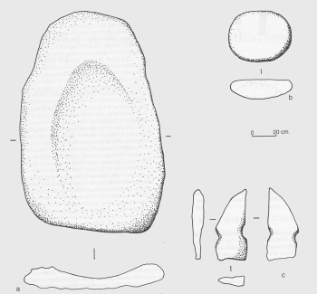 Figure 8.10 – Site E-94-3. Groundstone artefacts. a, milling stone; b, handstone;