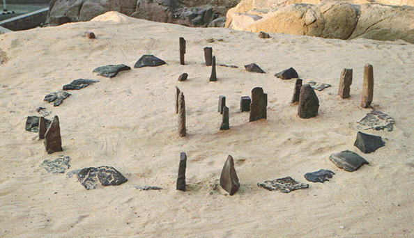 Whatever function the ceremonial centre served, it was a symbolic medium, and whatever ideas were invested in it will have derived from conceptual schemes embedded in ideology and religion. At Nabta symbolic risk must have been high. The ceremonial centre was not merely an investment in planning and labour but in ongoing use, a commitment to the ideas and beliefs that were incorporated into it. Failure of the ceremonial centre could have translated into the failure of entire belief systems and the underlying sense of livelihood security that accompanied them. Intensification of ceremonial activity may have corresponded to increasing subsistence stress, but the ceremonial centre was not destroyed at the end of the Ru’at el-Baqar and was added to in the Bunat el-Ansam, which seems to indicate that either the dating of the ceremonial centre is wrong and it should be placed in its entirely in the Bunat el-Ansam, or that the ideas that were initially expressed in the Ru’at el-Baqar continued to be observed during the arid period between the two phases, although no archaeological indicators have been found.