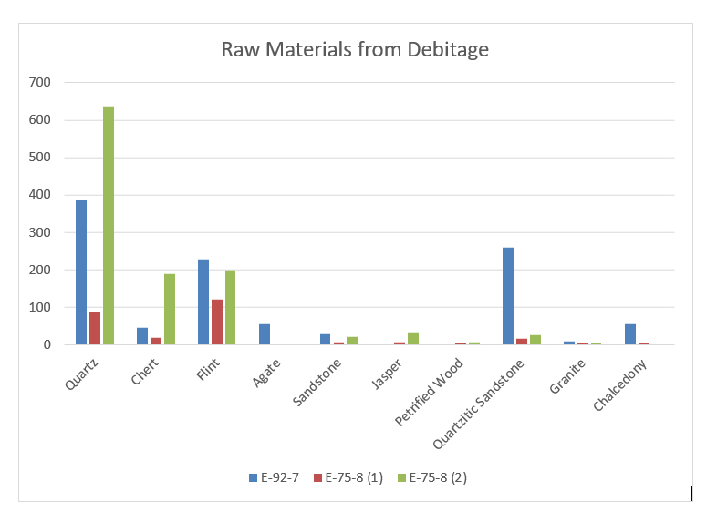 Figure 8.5 – Raw materials found in debitage at three sites at Nabta Playa