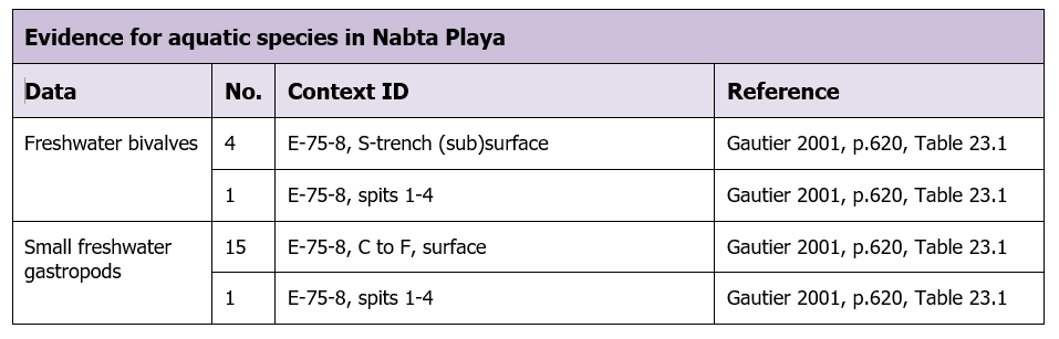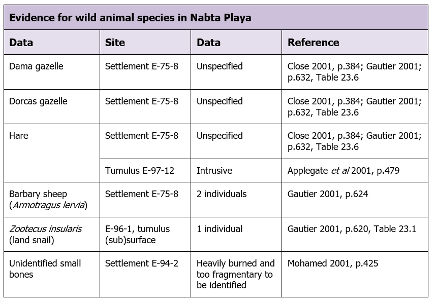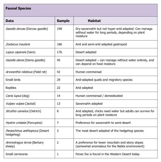 As with the plant species from Nabta, faunal species were arid-adapted, again indicating that this was a very marginal environment.