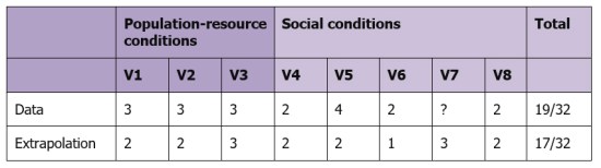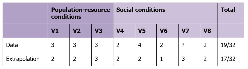 As there are eight variables the maximum vulnerability score is 32 (100%).