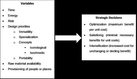 Decisions are visible in the ceremonial centre, where different requirements were met with different solutions. Any proposal to create the various elements required agreement, design, implementation, refinement and reinforcement in the acts of repetition and ritual use of each element (Moser 2014; Olupona 2014). The ceremonial centre is a statement of an intention that was implemented according to a set of specific requirements and may itself have been used in order to inform decisions about when to schedule certain activities, forming a bridge between the physical and the numinous. An example can be given in the case of the table rocks. We know that a requirement was identified and that this was conceptualized in the form of the location and modification of the table rock as a process that was considered to meet that need. At least some individuals were responsible for acting upon the requirement to shape and rebury the table rocks, but they are not necessarily the same people who identified the requirement and decided upon its form. The following elements were combined in the decision making process: identification of a problem or risk (use of knowledge or information); proposal/s of one or more solutions (conceptualization and communication); choice of an appropriate decision (negotiation and conflict resolution); design of the solution (conceptualization and negotiation); planning about how and when to deploy labour (negotiation, co-ordination); supervision of works (leadership, delegation). Additionally, decisions about religious aspects of the process may have required the intervention of ritual specialists. We can assume that the first of these projects was successful, because it was repeated. However, towards the end of the Ru’at el-Baqar negotiating the challenge to the ideas bound up in the ceremonial complex may have been both difficult and traumatic. In lithic tool technology although the tookit was largely expedient, decisions were made about raw materials that tools should be made of.