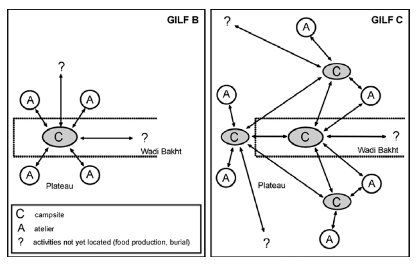 In completing the model, the lack of sufficient data about links between areas has stood out. Although some artefact types seem to have affinities with those in other areas, in order to understand the type of annual routes travelled by Gilf B and Gilf C groups, and to clarify which other groups made up part of their larger kinship groups and which they may have had some less intimate contact with, far more research needs to be undertaken.