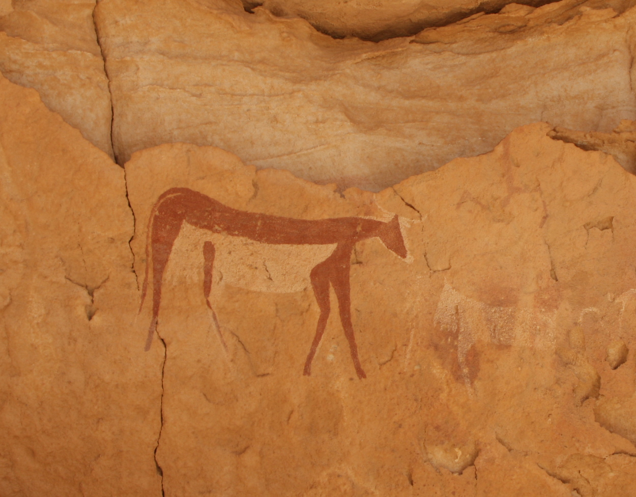 The rock art, which appears mainly at Jebel Uweinat but also finds expression in the rock shelters of the eastern Abu Ras plateau, again conforms to an instantly identifiable execution that can be classified by repeated style and features. This repetition was an important part of why each image and composition was painted and how it was used. Whether it was intended as a message to those within certain recognizable groups, or as a way of identifying those groupings to the external world is not known, but the skill and dedication invested implies that both those involved with the rock art and its ideas understood it in the context of their own social identity.